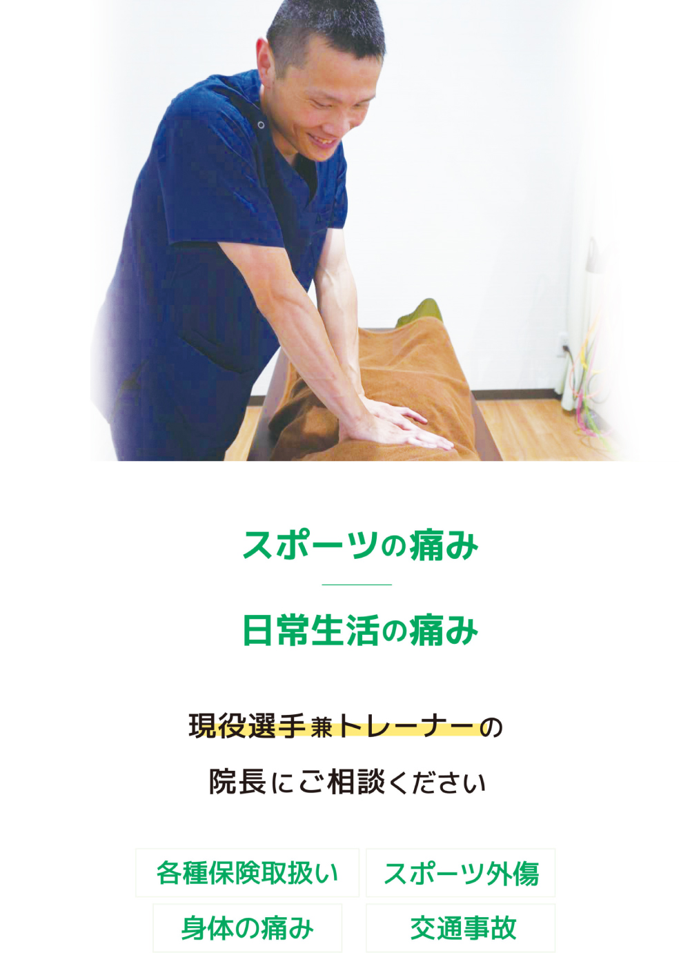 柔道整復師として約13年間、治療に対する知識と技術を学び、スポーツでの経験を活かし地域に貢献したいと考え開院を決意致しました。